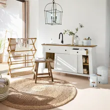 Verleihen Sie Ihrem Zuhause einen Hauch nostalgischer Tradition mit diesem Teppich-Klopfer aus natürlichem Rattan. Sein durchdachtes Design kombiniert Funktionalität und Ästhetik auf ansprechende Weise. Die robuste Struktur aus geflochtenem Rattan liegt angenehm in der Hand und ermöglicht ein effizientes Ausklopfen von Teppichen, Polstermöbeln oder Decken. Die dezente Aufhängeschlaufe sorgt dafür, dass dieser praktische Helfer stets griffbereit und stilvoll verstaut ist. Ein unverzichtbares Accessoire für Liebhaber klassischer Haushaltsgeräte und rustikaler Wohnkultur.