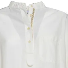Bazar Deluxe – Cream Cotton Shirt With Embroidery And Sequins – Größe 38 – weiß