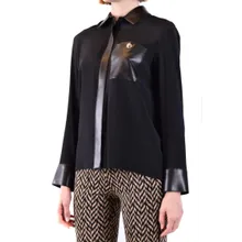 Simona Corsellini – Silk-Blend Shirt With Leather Accents And Timeless – Größe 40 – schwarz