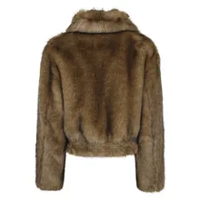 Stand Studio – Cropped Faux Fur Coat With Plush Texture And Wide – Größe 34 – braun